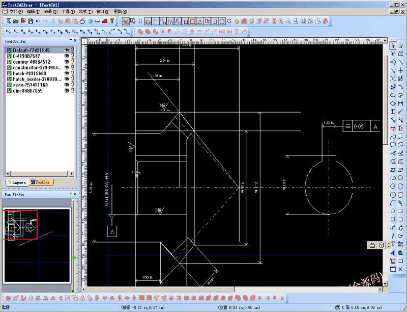 这个示例展示了如何使用E-Form++可视化图形组件库开发CAD应用,包括从中心开始绘制、MM_HIMETRIC影射模式、黑色背景编辑然后定制打印、自动捕获顶点、相交点等等,如下图: