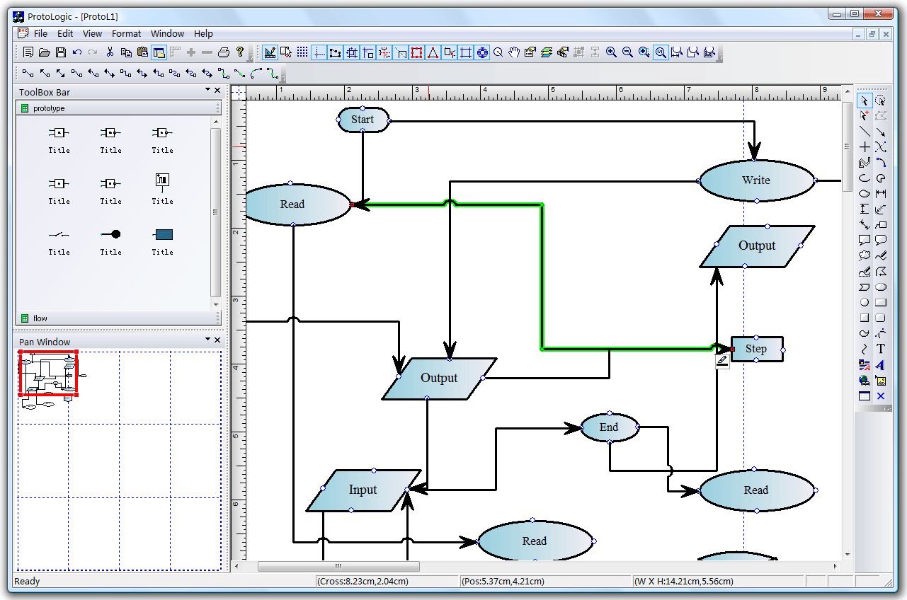 E-Form++可视化图形组件库可用于开发各种类型逻辑电路图应用系统,通过拖拉来绘制图形,通过单击绘制连接线,所有图形的属性均可定值等等,如下图: