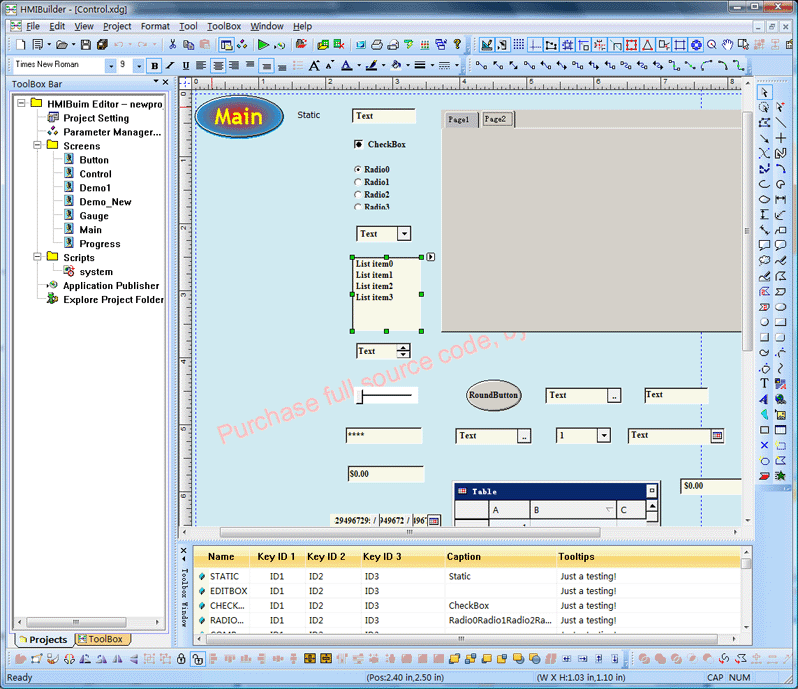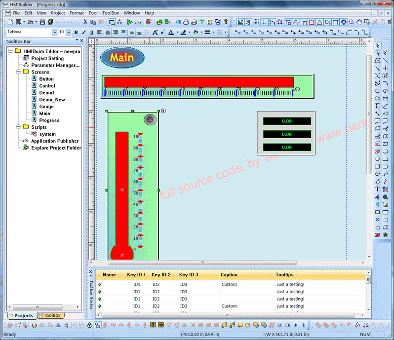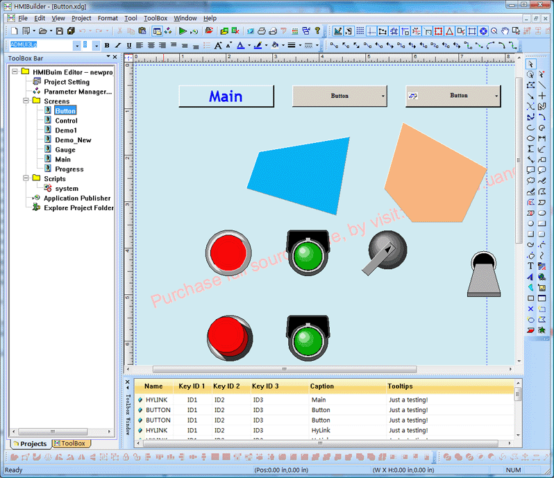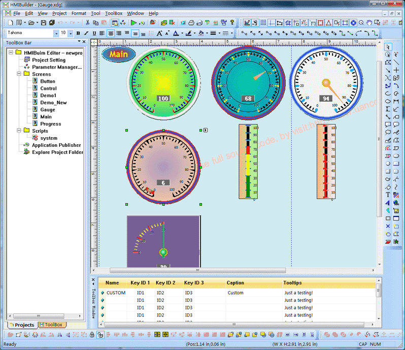 3). 支持项目的方式对HMI的开发工作进行组织,在同一个项目中能够同时制作多个画面和脚本以及编辑变量。